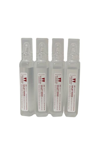 Saljet Wound Rinse 30mL 4 single use bottles Effective and unique application of sterile saline to a wound. This is Shield-Safety's answer to avoiding cleaning a wound with non-sterile tap water. Saljet makes rinsing a wound safe! Container is squeezable, making rinsing and removing debris from wound simpler without the need for syringes. Sold as a 4 pack.