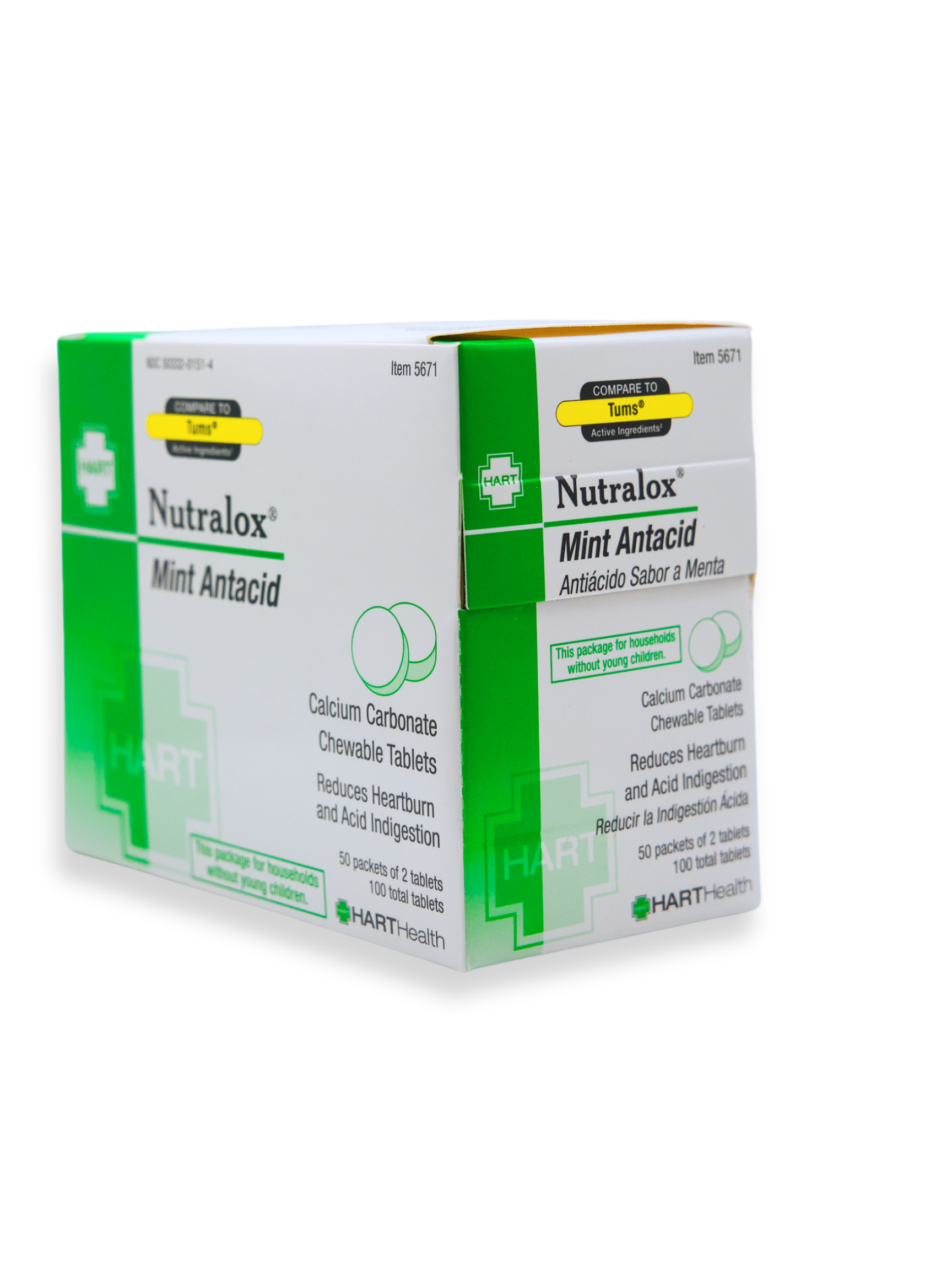 100 Tablets/50 packages/Compares to TUMS® Aluminum-free calcium supplement. For heartburn, sour stomach, acid indigestion and upset stomach. Each tablet contains: Calcium Carbonate 420mg